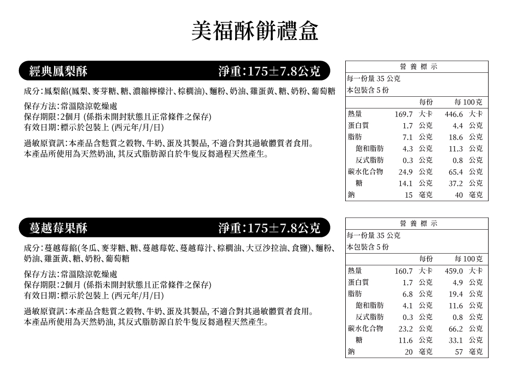 經典鳳梨酥(每顆35g/5入)、蔓越莓果酥(每顆35g/5入),共10入