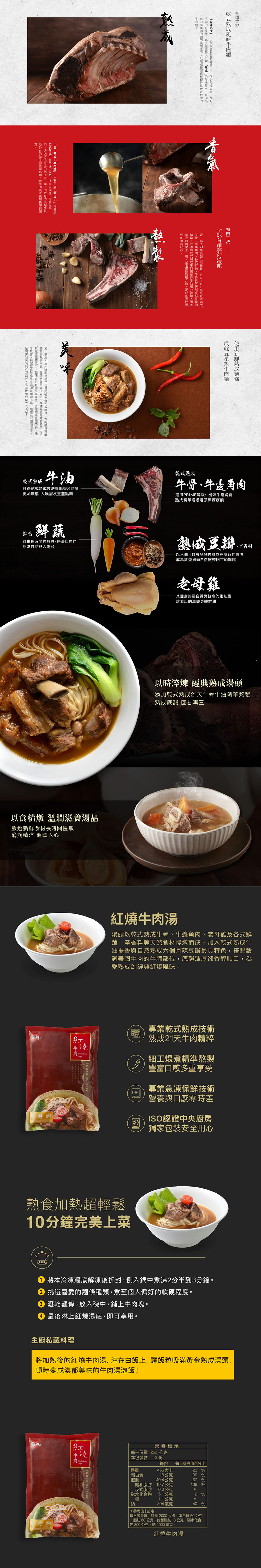 成分:牛高湯〔水、牛骨(紐西蘭/澳洲/尼加拉瓜/巴拿馬、美國)、全雞、米酒、洋蔥、白蘿蔔、紅蘿蔔、蒜、辣椒、薑、蔥、滷包(肉桂、小茴香、八角、花椒、孜然、三奈、丁香)〕、滷牛肉(牛腩、水、醬油、二砂、冰糖、米酒、鹽、雞粉(鹽、麥芽糊精、糖、雞肉粉、玉米澱粉、酵母萃取物(酵母萃取物、鹽)、調味劑(5-次黃嘌呤核苷磷酸一鈉、5-烏嘌呤核甘磷酸二鈉)、雞油、香料、棕櫚油、白胡椒)、滷包(肉桂、小茴香、八角、花椒、孜然、三奈、丁香)、番茄糊、花椒粒、八角、肉桂〕、牛油(美國)、豆瓣醬(水、黃豆、小麥、蔗糖、辣椒、海鹽、香菇、昆布)、雞粉〔(鹽、麥芽糊精、糖、雞肉粉、玉米澱粉、酵母萃取物(酵母萃取物、鹽)、調味脅(5-次黃嘌呤核苷磷酸二鈉、5-鳥嘌呤核苷磷酸二鈉)、雞油、香料、棕櫚油、白胡椒)〕、鹽、甘草、肉桂