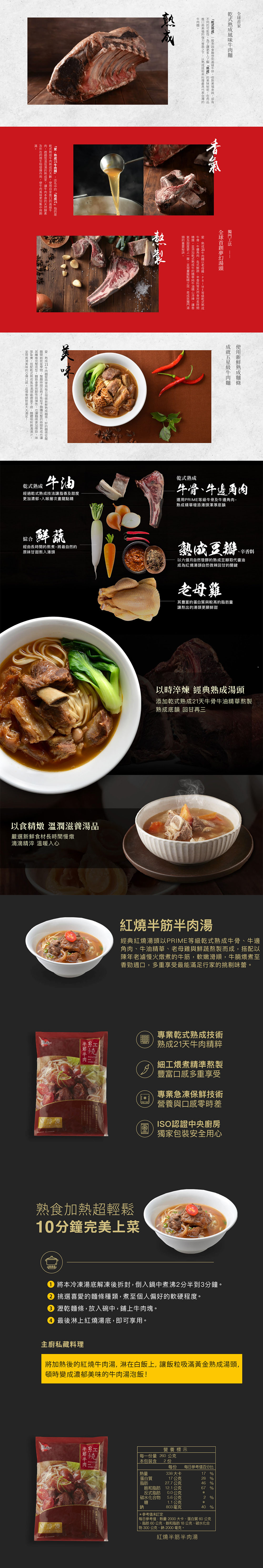 成分:牛高湯〔水、牛骨、全雞、洋蔥、白蘿蔔、紅蘿蔔、蒜、辣椒、薑、蔥、滷包(肉桂、小茴香、八角、花椒、孜然、三奈、丁香)〕、滷牛筋牛肉〔牛腩、牛筋、水、醬油、二砂、冰糖、米酒、鹽、雞粉(鹽、麥芽糊精、糖、雞肉粉、玉米澱粉、酵母萃取物(酵母萃取物、鹽)、調味劑(5'-次黃嘌呤核苷磷酸二鈉、5-鳥嘌呤核苷磷酸二鈉)、雞油、香料、棕櫚油、白胡椒)、番茄糊、滷包(肉桂、小茴香、八角、花椒、孜然、三奈、丁香)、花椒粒、八角、肉桂〕、牛油、豆瓣醬(水、黃豆、小麥、蔗糖、辣椒、海鹽、香菇、昆布)、雞粉〔(鹽、麥芽糊精、糖、雞肉粉、玉米澱粉、酵母萃取物(酵母萃取物、鹽)、調味劑(5'-次黃嘌呤核苷磷酸二鈉、5'-烏嘌呤核苷磷酸二鈉)、雞油、香料棕櫚油、白胡椒)〕、鹽、甘草、肉桂