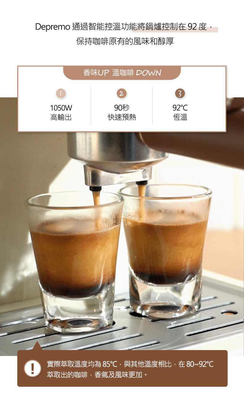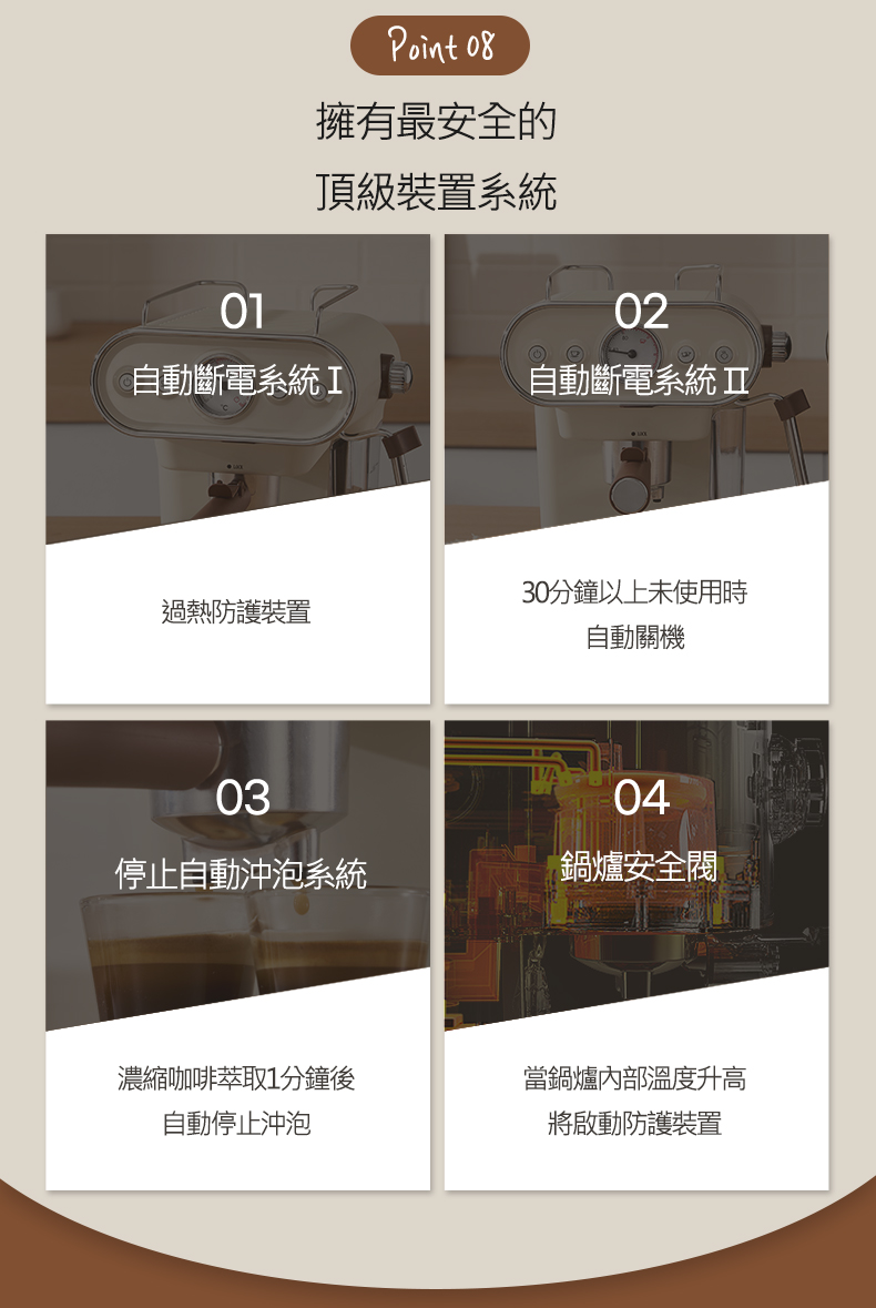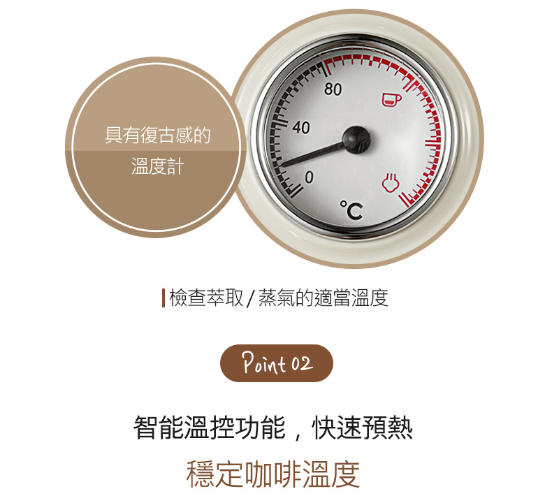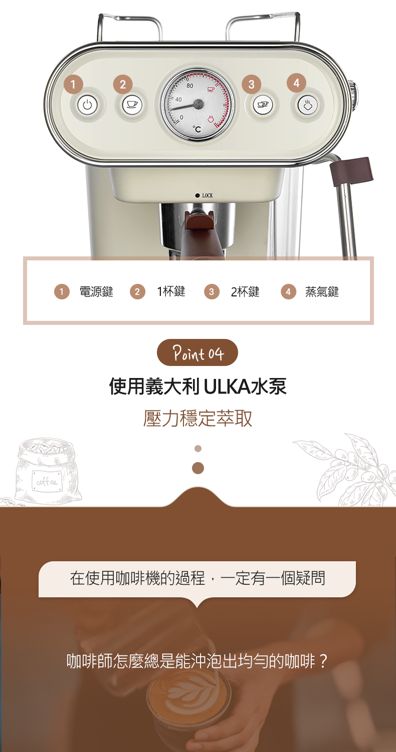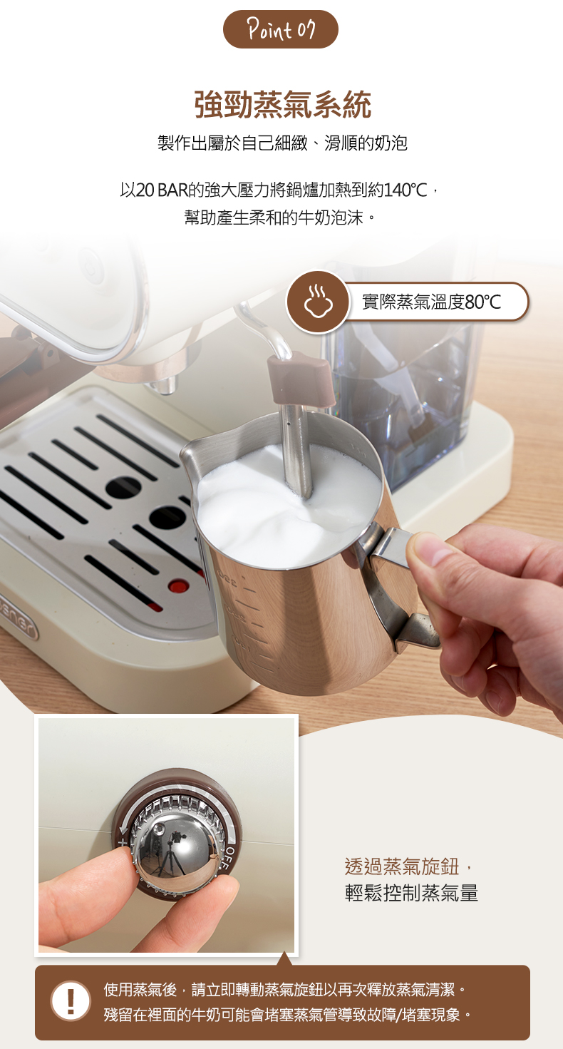 ・強勁蒸氣系統,製作出細緻柔和的牛奶泡沫