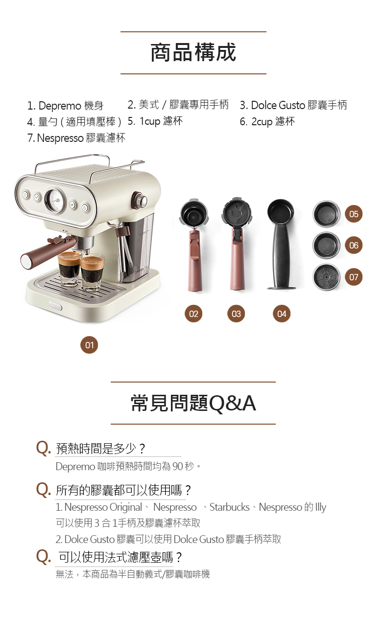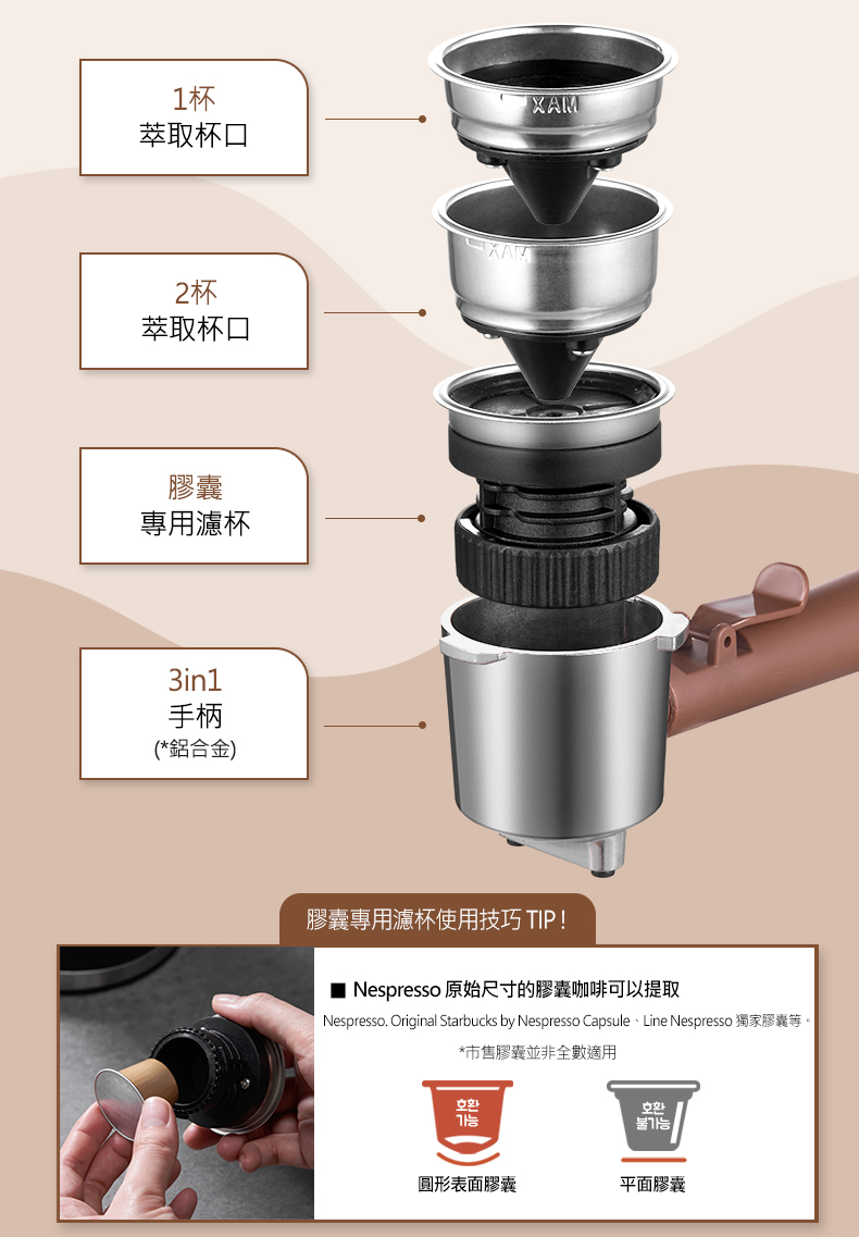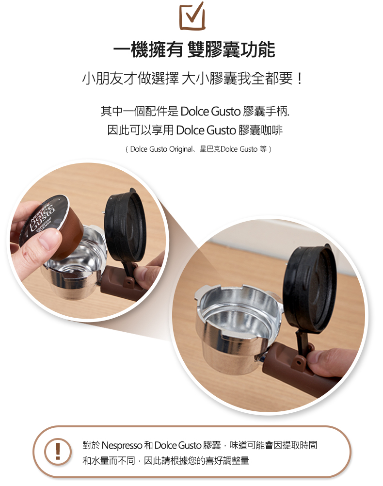 ・ 市售唯一雙膠囊設計Nespresso & Dolce Gusto 都可以沖!