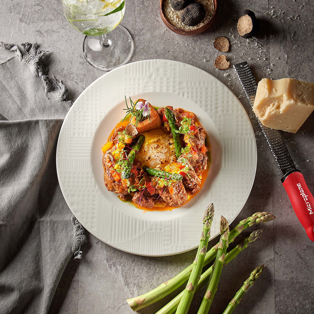 源自義大利米蘭的經典佳餚,特選澳洲小牛膝,與洋蔥、西芹、紅蘿蔔及番茄等食材熬煮而成的醬汁,慢火燉煮至軟嫩滑順,保留牛膝的膠質,搭配翠綠蘆筍與時令烤蔬菜,最後撒上現刨新鮮黑松露,每一口都是肉香、蔬菜甘甜與松露奢華香氣交融的極致饗宴,令人回味無窮。