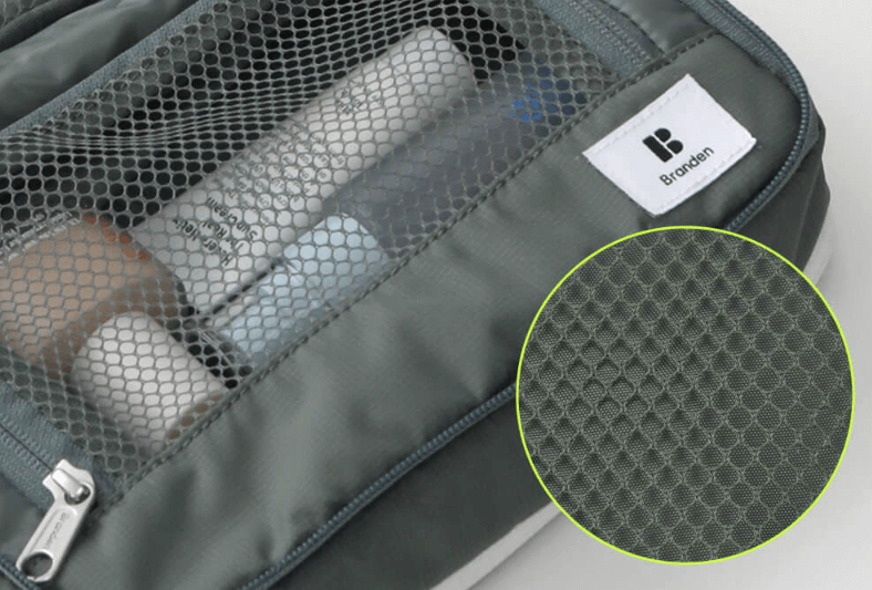 第一層(迷你網袋):收納化妝棉、隨身牙線、小化妝工具…小物品