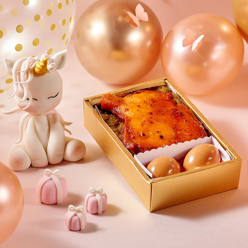 由五星宴會廳香港行政主廚設計。油飯鹹香豐潤,搭配經典肝腸、臘腸與皮脆肉嫩的香烤雞腿,風味層次豐富,盡顯港式美饌的講究與大器。
