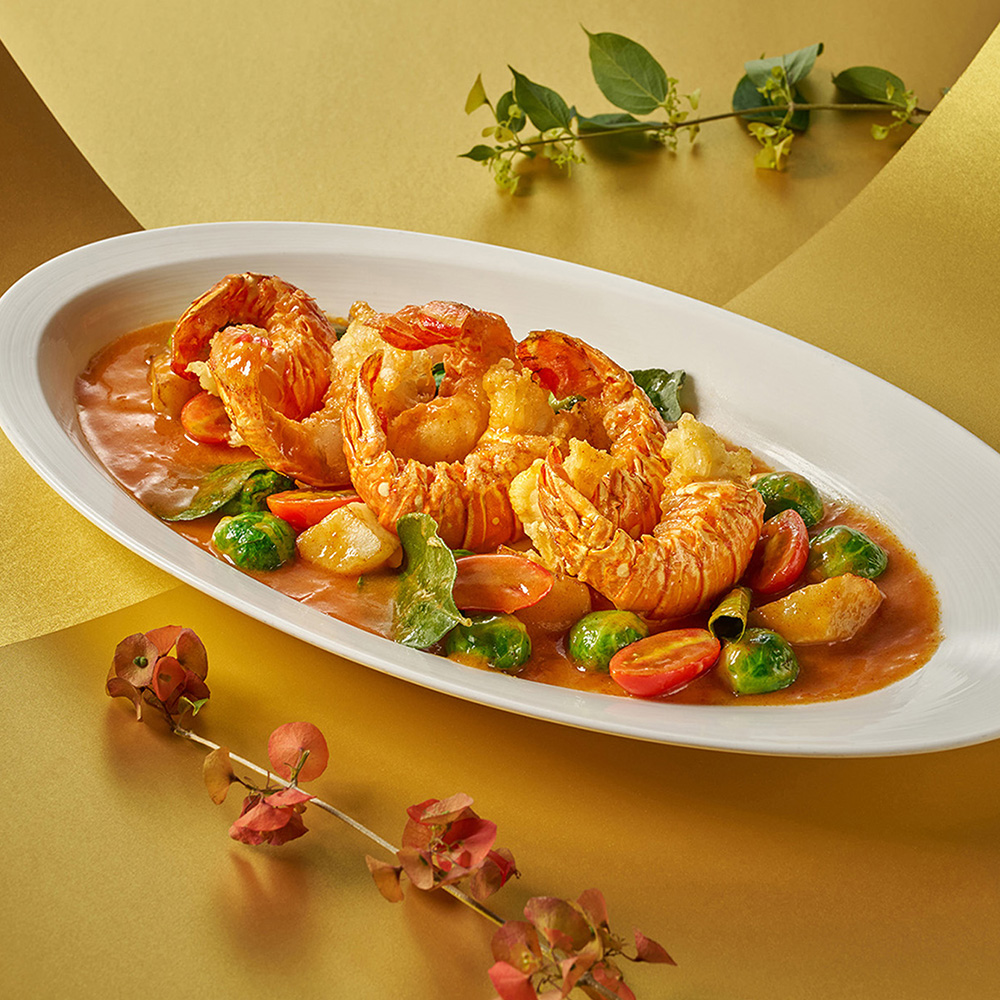 新鮮龍蝦身搭配帶有鹹甜風味的泰式帕能紅咖哩醬烹煮,特別添加椰奶溫和紅咖哩的辛香味,龍蝦的海味帶上咖哩香氣,鮮濃厚實。