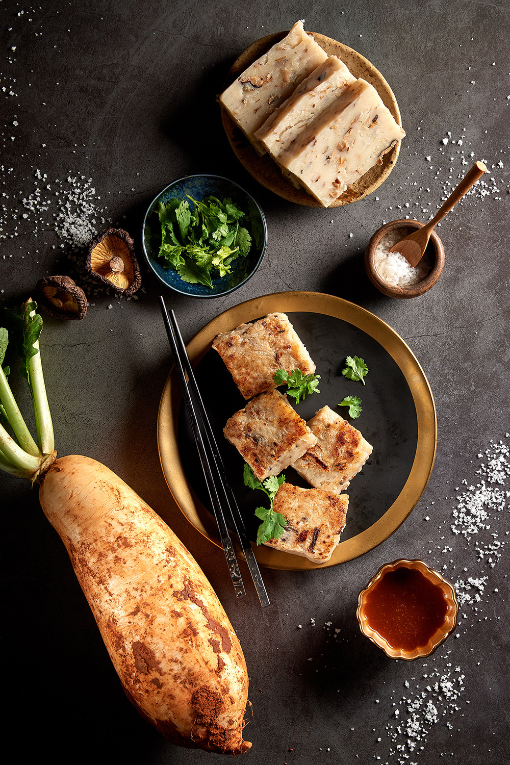 結合羊肚菌、牛肝菌及香菇,搭配新鮮蘿蔔絲製成口感綿密、適合茹素者品嚐的蘿蔔糕,淡雅的菌菇香氣,纖食養生。