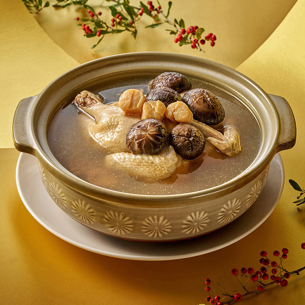 選用肉質紮實的土雞,搭配香氣濃郁的花菇與鮮味瑤柱熬煮,琥珀色湯體,鮮香醇美,土雞肉鮮嫩香濃有彈性。 ※建議取餐加熱後盡速食用完畢。