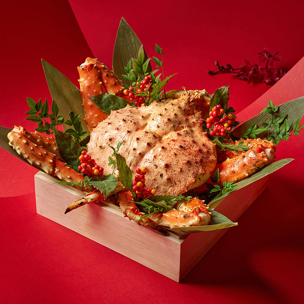 選用冬季盛產的日本鮮活鱈場蟹,以炭火烤至蟹味香濃,完封豐美海味,鮮甜肥美的鱈場蟹,年節團圓豪氣上桌。