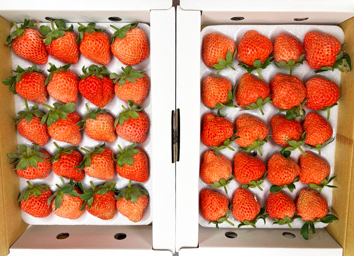 成熟後由農場團隊人工採收、精選分級,將新鮮的草莓送到消費者手中。