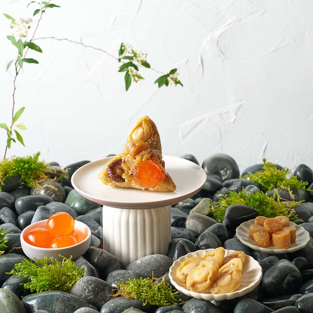 選用北海道干貝與鮑魚入粽,搭配梅花豬胛心肉。