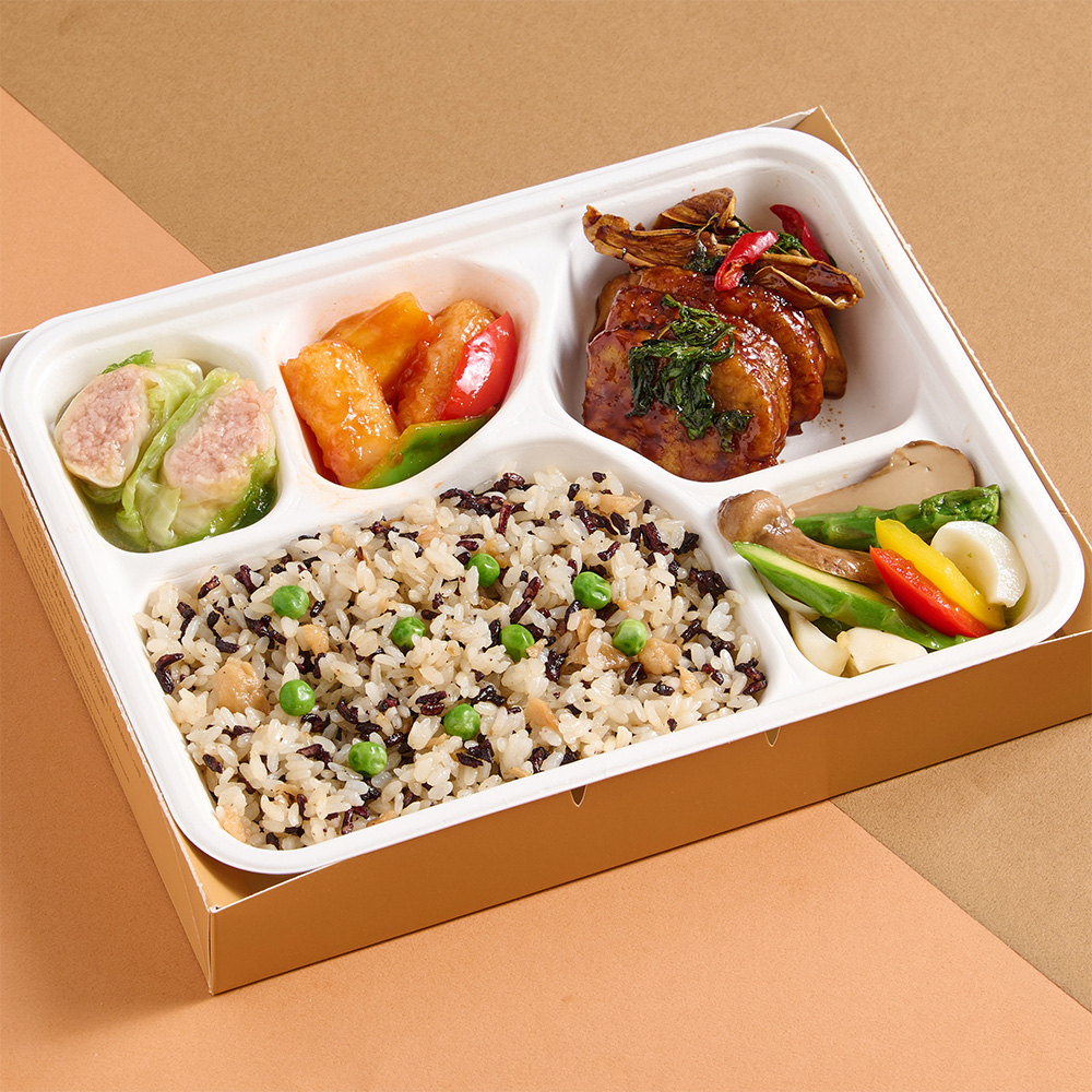 搭配色彩繽紛的花樣時蔬卷,展現細膩的手作感;並加入蘆筍炒松茸百合與酸甜開胃的糖醋山藥,多樣化的食材組合,不僅平衡了味蕾層次,更兼具高營養價值。