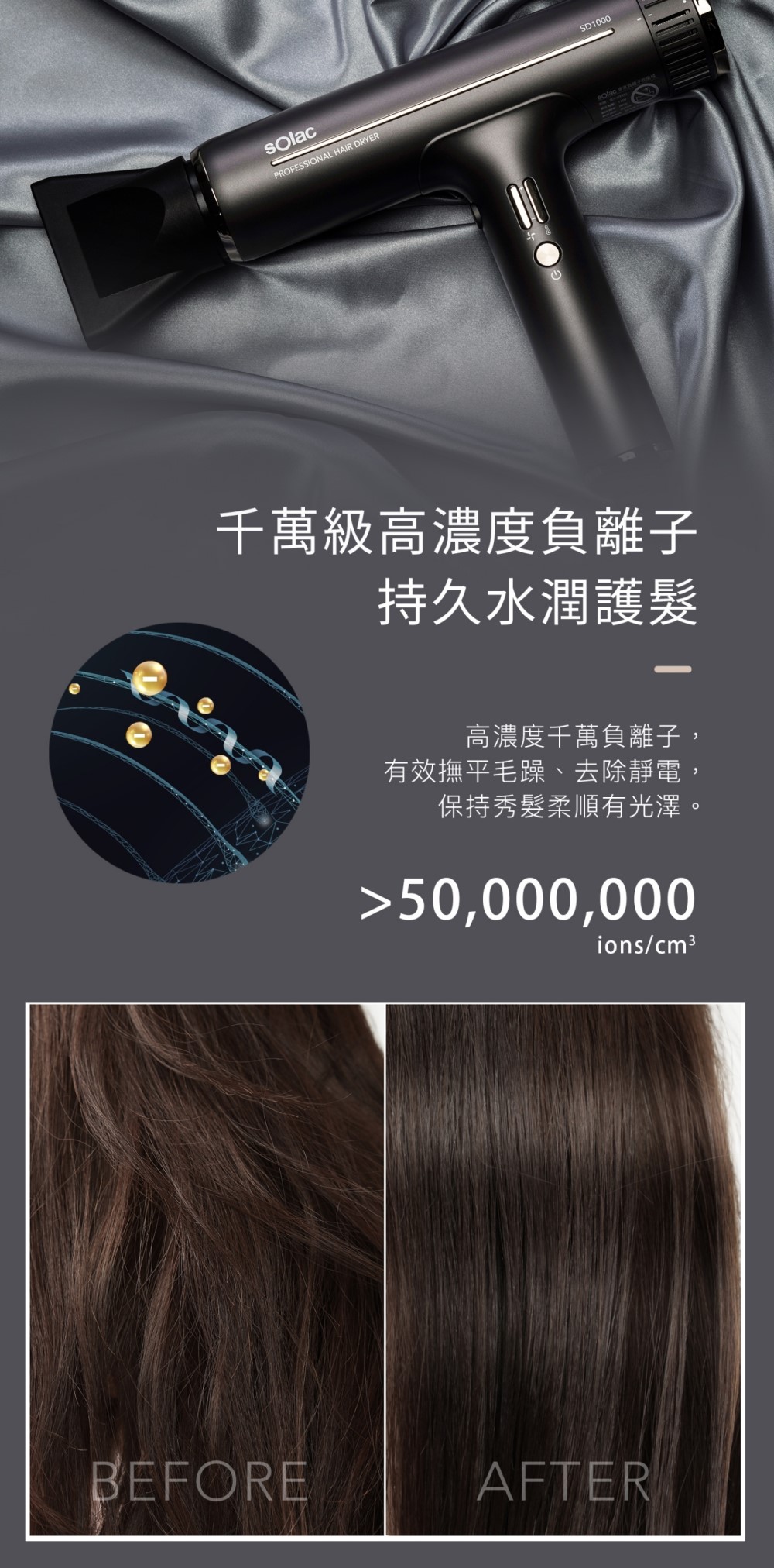 .高濃度負離子順髮,天然滋養髮膜,改善毛糙髮質。