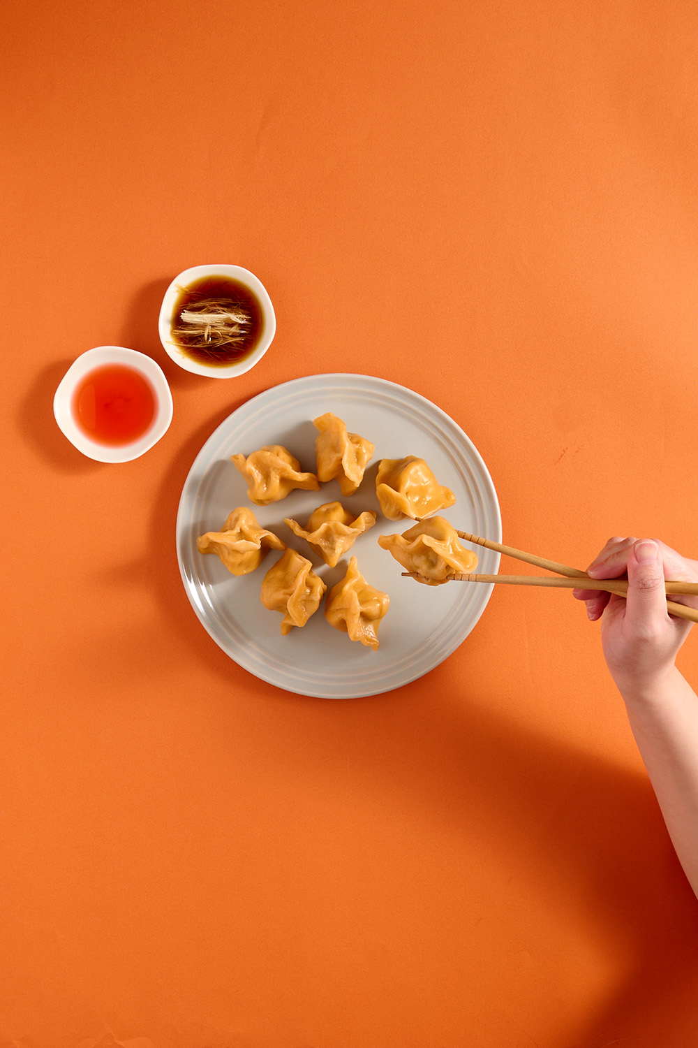 特選新鮮蝦仁,完整保留蝦子的鮮甜,嚴格把關每個製程,確保每一隻蝦都是新鮮且完整入餡,將整尾蝦仁加上香菜提味並結合了上等黑毛豬後腿肉、高麗菜為餡,並以胡蘿蔔汁特製的餃皮包裹著,細緻的肉質與鮮味充沛的汁液在您嘴中綻放,回味無窮。