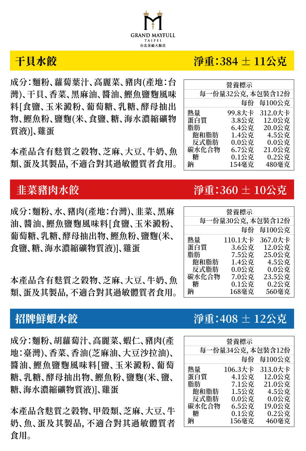 ※本產品含麩質之穀物、甲殼類、芝麻、大豆、牛奶、魚、蛋及其製品,不適合對其過敏體質者食用。