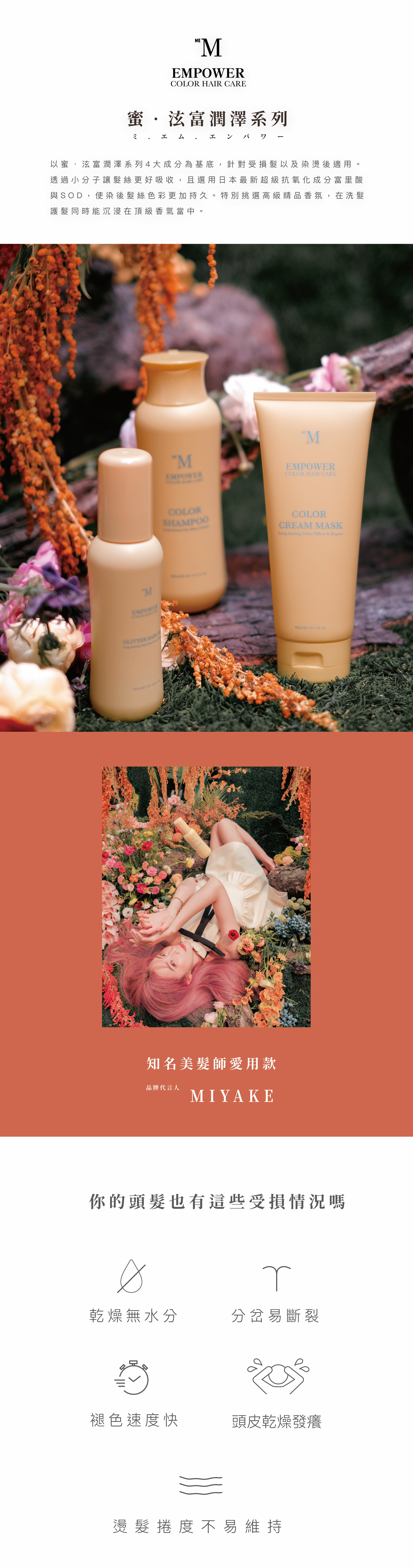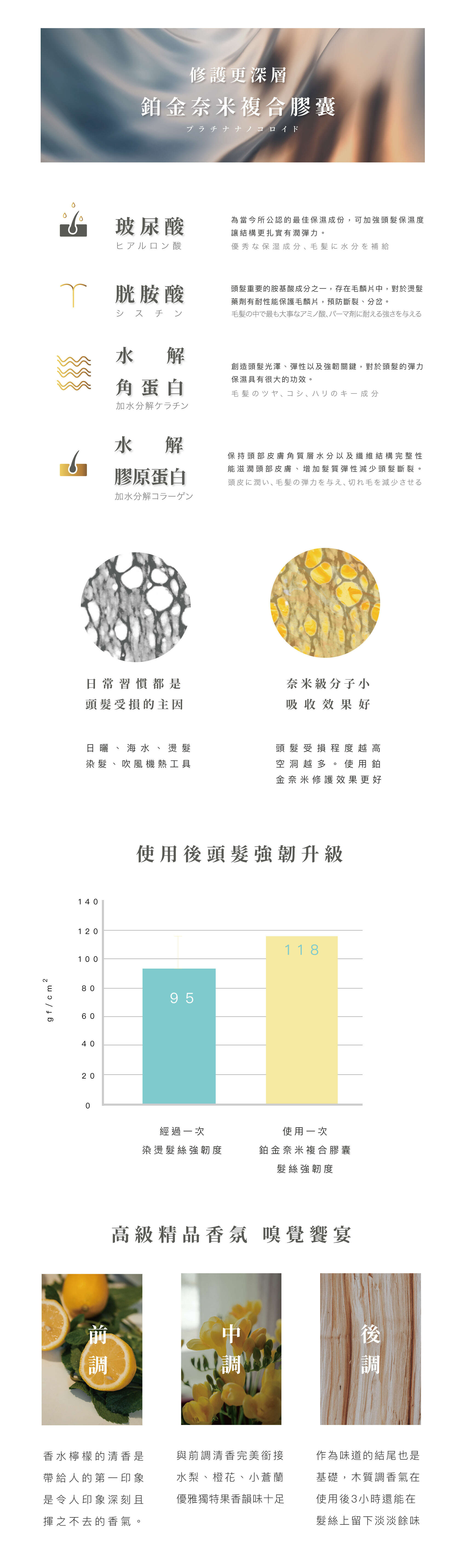 專為燙、漂、染後極度受損髮而生,深層修護並滋養髮絲達到柔軟不糾結。