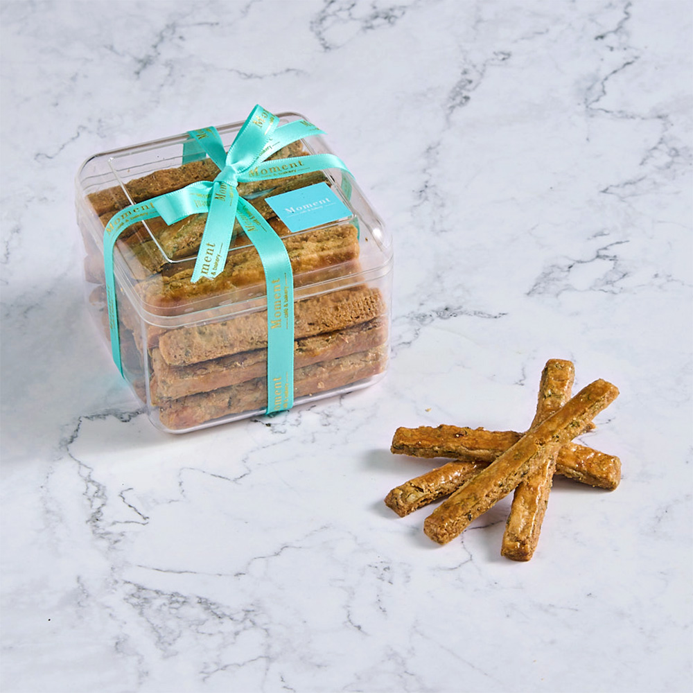 經過兩段式烘烤,脆硬微甜的口感,搭配咖啡最對味。