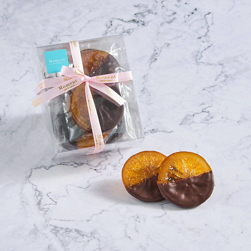 再以濃郁巧克力半邊包覆,巧克力的醇厚與香橙的清爽交織融合,