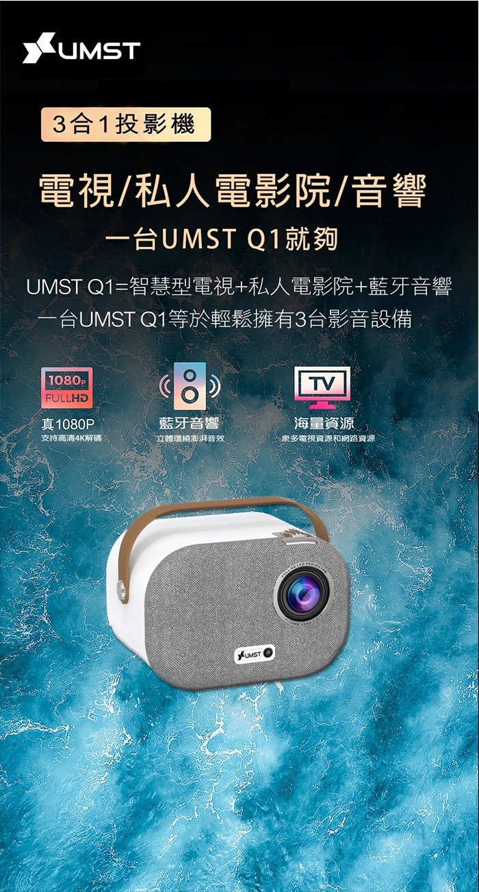 【免運】UMST 優美視 1080P智慧型微投影機Q1